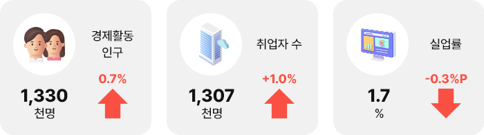 전년동월비(경제활동인구, 취업자수) / 전년동월차(실업률)