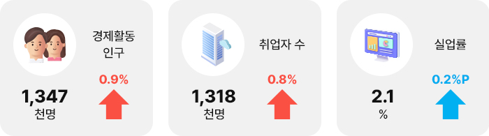 전년동월비(경제활동인구, 취업자수) / 전년동월차(실업률)